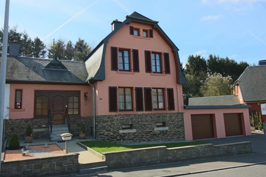 WILTZ: A VENDREMaison unifamiliale libre de 4 côtés Surface habitable: 219 m2 (rdch.: 125 m2; 16m2 véranda, 1er étage: 78 m2) Terrain 7,50 ares Année de construction: 2000 rez-de-chaussée: hall d'entrée 2 chambres à coucher WC séparé salle de…